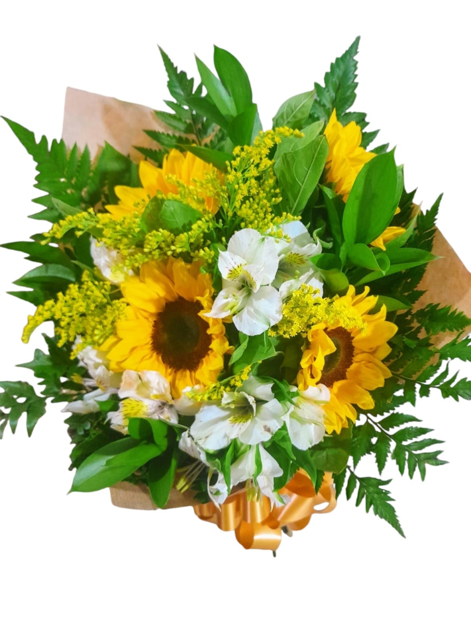 BUQUÊ COM 4 GIRASSOL E ASTROMELIAS