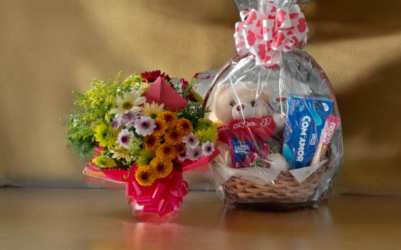 CESTA CONTENDO 1 URSO 32CM ,1 ICE, 1 CX BOMBO LACTA, 1 BARRA DE CHOCOLATE LACTA 90G, 1 TRENTO, 2 BOMBOM, 1 BARRA CEREAL, 1 BISCOITO COOCKS