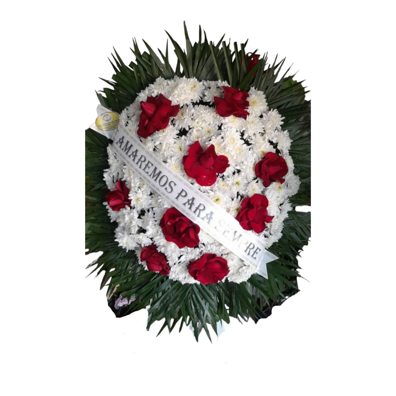 Coroa de crisântemos com rosas ou gérberas tamanho médio.
