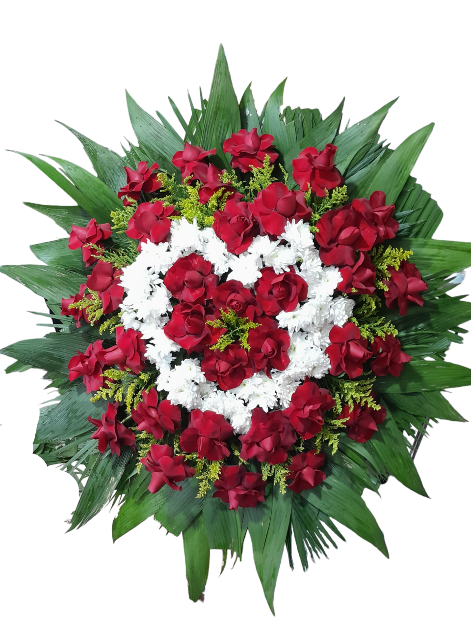 Rosas vermelhas com coração de crisântemos, tango e miosótis